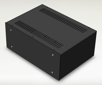 Изделие КДЭ 430.178/300 - корпус для усилителя и др. радиоэлектронной аппаратуры (РЭА) размерностью 4U без радиатора, материал основы - сталь 2мм , крышки - сталь 1мм, передней панели - сталь 3мм, в комплекте передние болты и ножки, покраска полимерной порошковой чёрной матовой краской. Вентиляционные прорези расположены сверху и снизу вдоль передней и задней панели. Габаритные размеры (ВхШхГ) 178х430х306мм. Внутренние размеры (ВхШхГ) 169х425х300мм. Размер в упаковке 50х40х25см 7,2кг. Также возможно исполнение передней панели корпуса под рэковую стойку 19" (дюймов) по ГОСТ 28601.1-90.