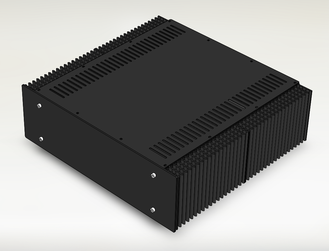 Изделие КДЭ 430.133/400Р - корпус для усилителя класса А и др. радиоэлектронной аппаратуры (РЭА) размерностью 3U с боковыми сдвоенными радиаторами суммарной площадью 10000см^2, (подошва радиаторов толщиной 10,5мм, рёбра 34,5мм), общий вес радиаторов 5,6кг, с вентиляцией вдоль радиаторов сверху и снизу, материал основы - сталь 2мм, крышки - сталь 1мм, передней панели - сталь 3мм, в комплекте передние болты и ножки, покраска полимерной порошковой чёрной матовой краской, габаритные размеры (ВхШхГ) 133,5х430х406мм. Внутренние размеры (ВхШхГ) 129х340х400мм. Размер упаковки 50х50х21см 12,5кг. Возможно исполнение передней панели корпуса под рэковую стойку 19" (дюймов) по ГОСТ 28601.1-90. Нужные отверстия предлагается сверлить самостоятельно ступенчатым сверлом.